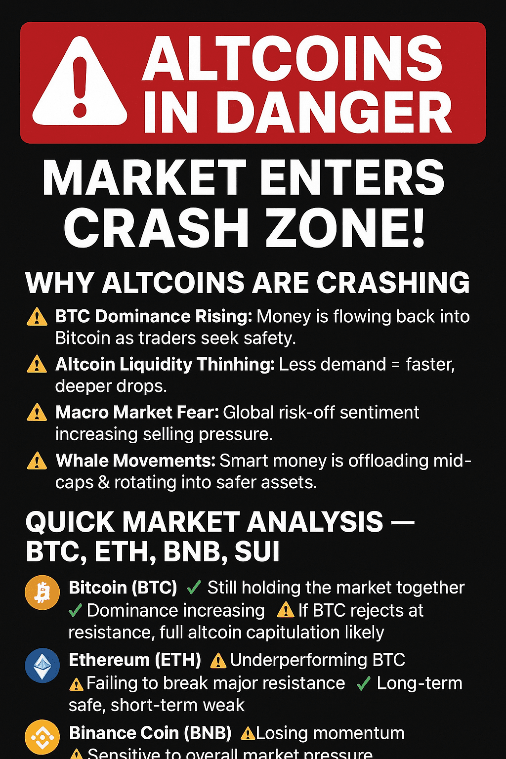 🔥 Altcoiny wchodzą w ekstremalną strefę niebezpieczeństwa — analiza BTC, ETH, BNB, SUI w środku