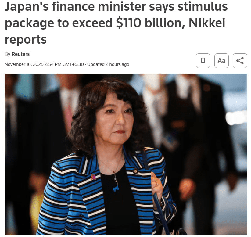 Rozważają pakiet stymulacyjny o wartości ¥17 bilionów (~$110B) — jeden z największych od lat.