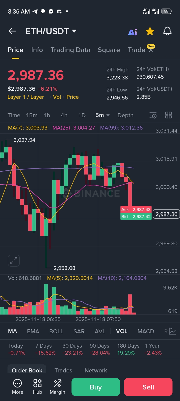 Ethereum $ETH : Około 2 900 $, również słabe, ponieważ presja sprzedaży rośnie.