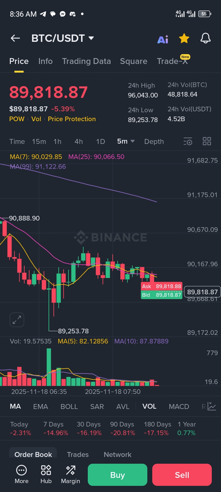 Bitcoin (BTC): Handel wokół 89 000 $, mocno w dół po utracie kluczowych stref wsparcia.