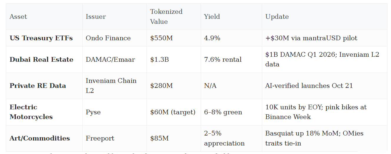 Pyse Green RWAs & Brickken Live (12–14 listopada): 10K e-motocykli z UAE tokenizowanych (cel $50M, 6–8% zysk); Brickken umożliwia fundusze kapitałowe/dłużne powyżej $300M w 16 krajach.