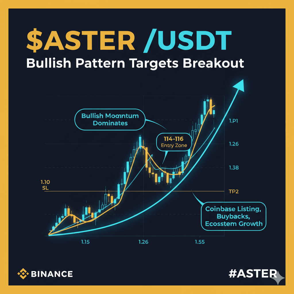 ASTER jest notowany na poziomie 1,155 USDT (Uwaga: Cena jest przybliżeniem na podstawie recentnych danych), konsolidując po dużym wzroście. Cena utrzymuje się powyżej strefy wsparcia $1,15, a MACD zaczyna być dodatnie, co sugeruje, że momentum wzrostowe zaczyna dominować po ostatnim schłodzeniu. Informacje o niedawnym notowaniu na Coinbase, wykupach i wzroście ekosystemu (jak konkurs handlowy o wartości 10 milionów dolarów) dostarczają silnej narracji.