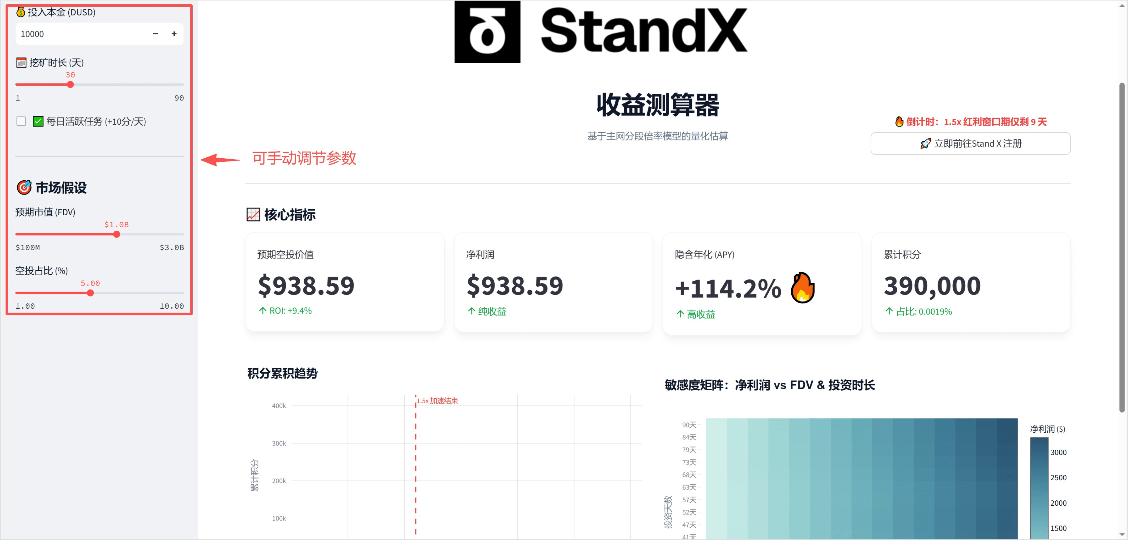 Ta strona w pełni realizuje funkcję automatycznego obliczania zysków z airdropów w różnych scenariuszach FDV/warunkach odblokowania TGE, co może pomóc osobom/studiom w zarządzaniu oczekiwaniami dotyczącymi airdropów. W przyszłości dostosuję to w oparciu o więcej zasad punktowych ujawnionych przez Standx.