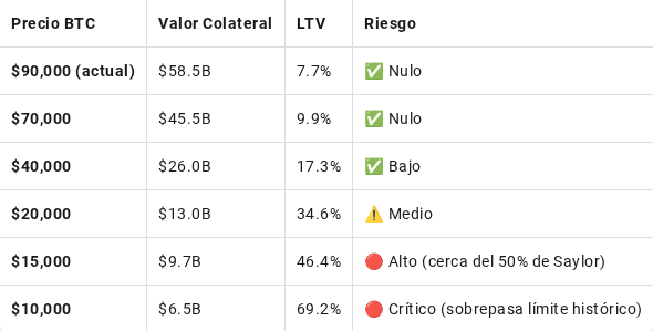Próg bezpieczeństwa: Nawet przy BTC $15,000, LTV wynosiłoby ~30%, poniżej limitu 50%, o którym wspominał Saylor w przypadku zadłużenia zabezpieczonego.