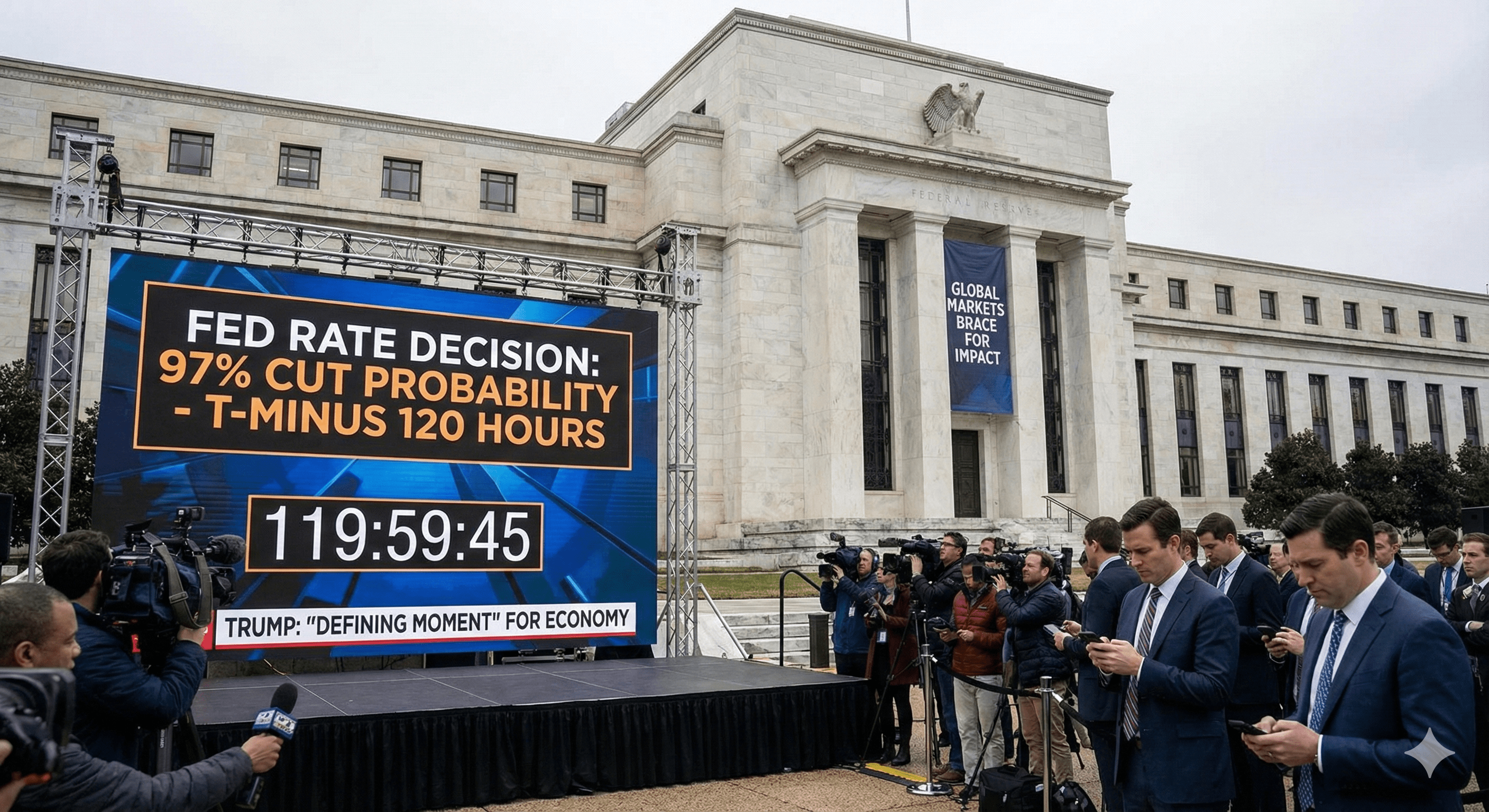 Jesteśmy mniej niż 5 dni od decyzji, która może zdefiniować globalny krajobraz finansowy. Odliczanie do następnego ogłoszenia Rezerwy Federalnej już się zaczęło, a szanse na cięcie stóp procentowych wzrosły do ogromnych 97%.