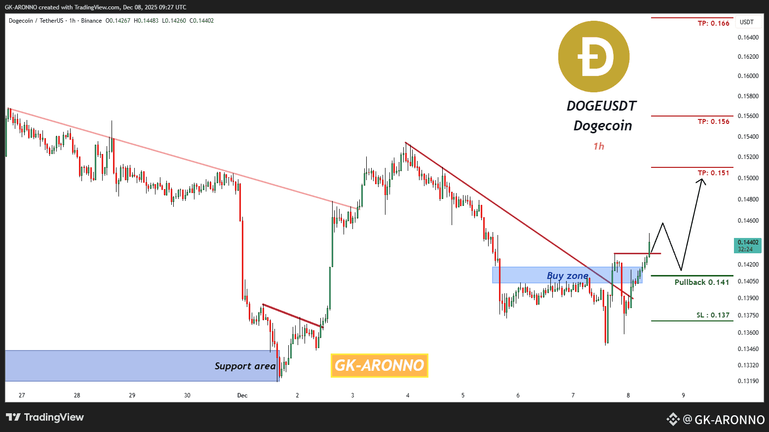 Jest sygnał handlowy do zakupu w DOGEUSDT Dogecoin (1h) (kontrakty terminowe)