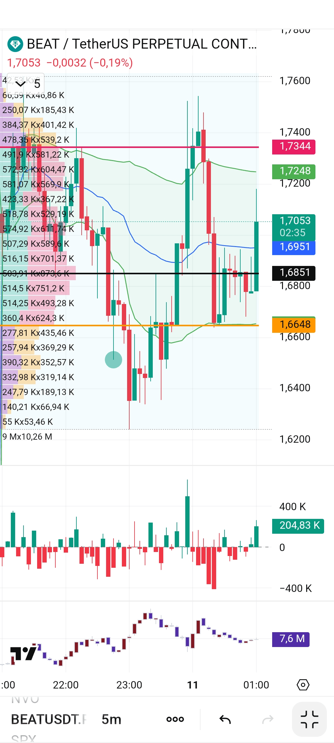 Szacowanie prawdopodobieństwa i scenariuszy operacyjnych (termin intradnia): • Wysokie prawdopodobieństwo kontynuacji wzrostowej w krótkim okresie, podczas gdy cena zamyka się i pozostaje stabilna powyżej POC i VWAP, z wolumenem powyżej średniej okresu: początkowy cel techniczny 1.725–1.728; rozszerzenie do 1.7344, jeśli wolumen potwierdzi.