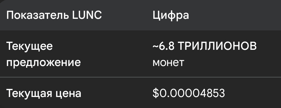 Matematyka marzeń: Aby LUNC kosztował $1.00, przy obecnej podaży jego kapitalizacja rynkowa musi wynosić $6.8 TRYLIONÓW. To wielokrotnie więcej niż kapitalizacja rynkowa CAŁEGO obecnego rynku kryptowalut! To ekonomicznie niemożliwe.