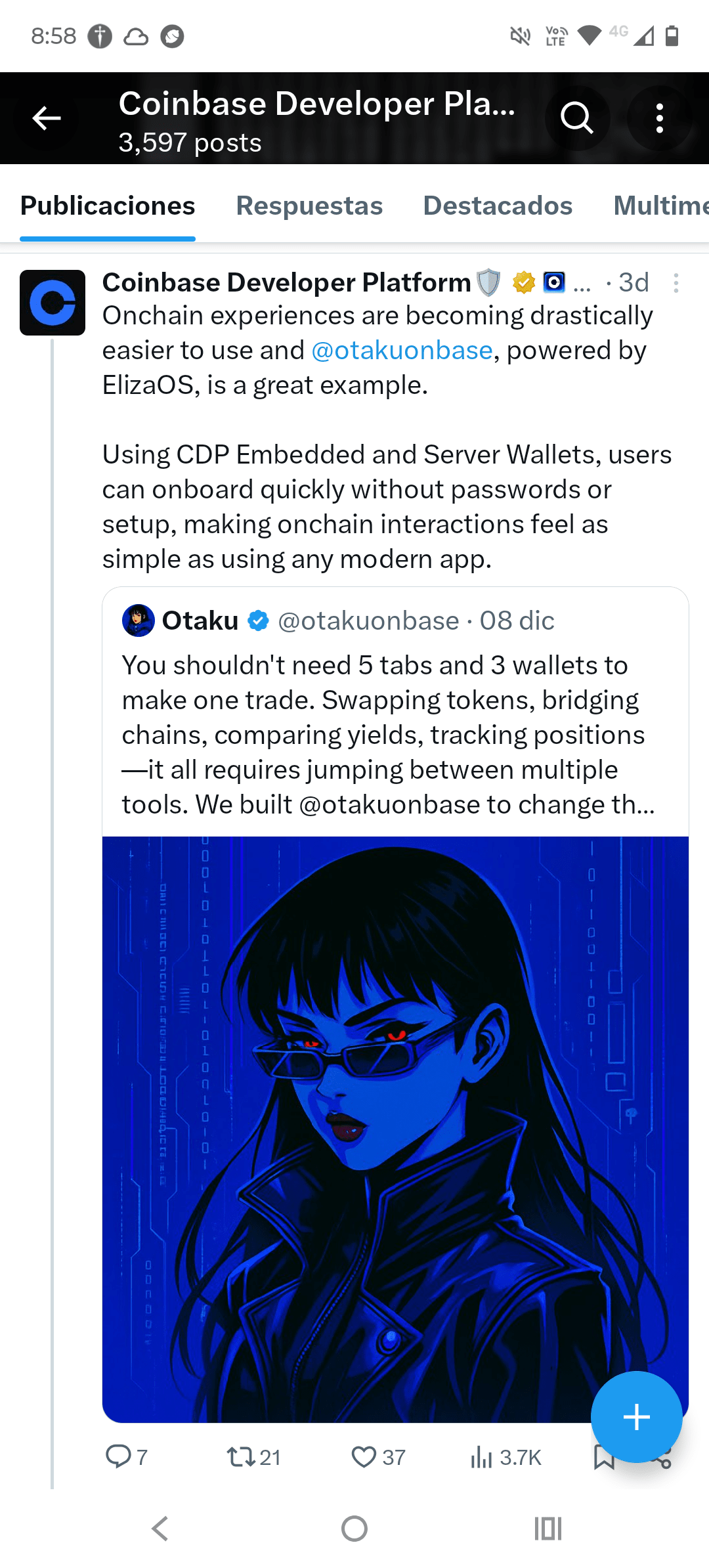 „@otakuonbase, zasilane przez ElizaOS, to wspaniały przykład”
