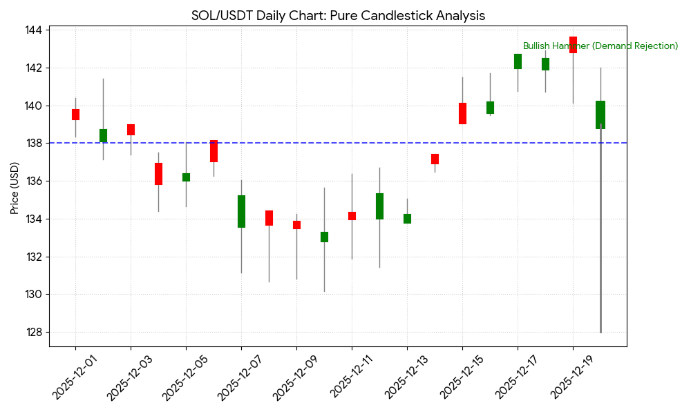 Znaczenie: Pomimo krótkoterminowego FUD (Strach, Niepewność, Wątpliwość) na rynku, poważny popyt chroni poziom wsparcia. Młot to oparte na świecach dowody, że wsparcie na poziomie 138 USD jest aktywne.