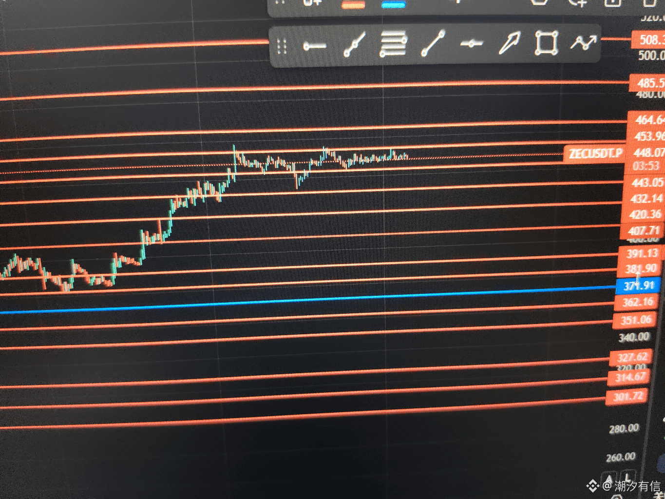 ZEC,就看443这个位置,只要明早八点收线不跌破这个位置,就看上当压力位453.9-464-485.5这几个位置附近,如果明天早上八点收线跌破这个位置就看下方支撑位,420-407-391-381这几个位置附近。