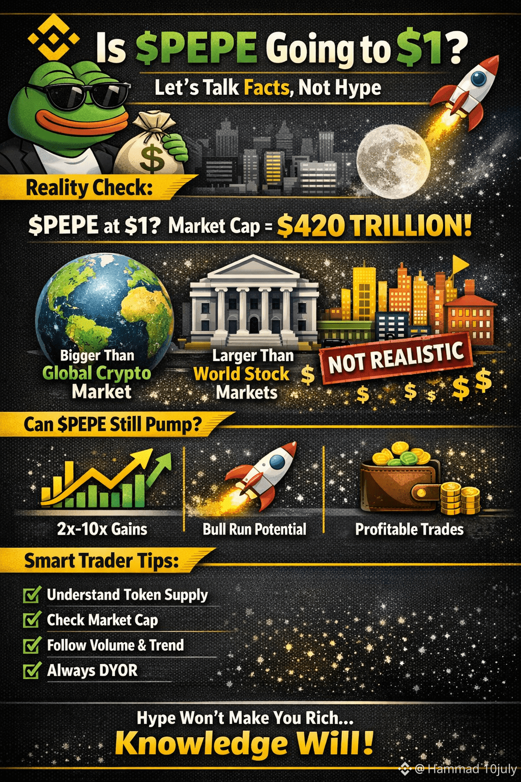 Many traders are dreaming big about $PEPE hitting $1 and changing their lives overnight 💰🚀. Holding millions or even billions of tokens feels exciting — but smart trading starts with math, not emotions.
