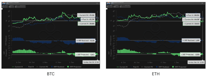 VRP (premia za ryzyko zmienności = implied volatility IV - realized volatility RV) jest ważnym wskaźnikiem oceny racjonalności wyceny opcji. Obecnie rynek znajduje się w fazie korekty.