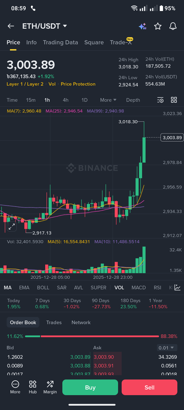 Ceny Ethereum odzyskały się od kluczowych poziomów wsparcia w okolicach 2900–3000 USD i są obecnie notowane powyżej istotnych stref technicznych. Analitycy podkreślają, że ETH może zaznaczyć dalszy wzrost, jeśli dojdzie do przebicia oporów i kupujący pozostaną w kontroli. Wzory techniczne takie jak rozszerzające się kanały rosnące i silniejsze wyższe dołki wskazują na przesunięcie w kierunku wzrostowym