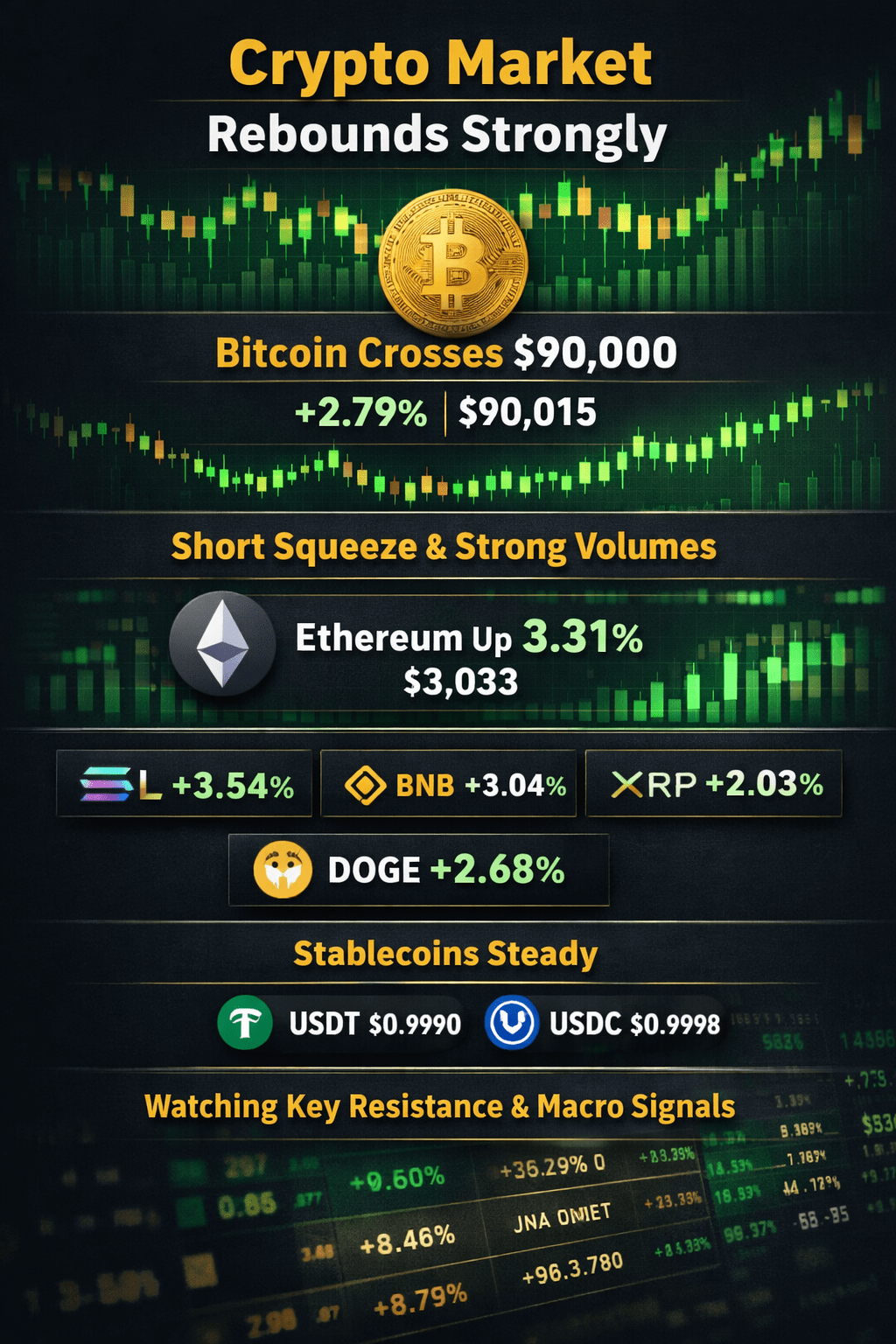 Rynek kryptowalut odzyskuje siły, gdy Bitcoin odzyskuje 90K USD