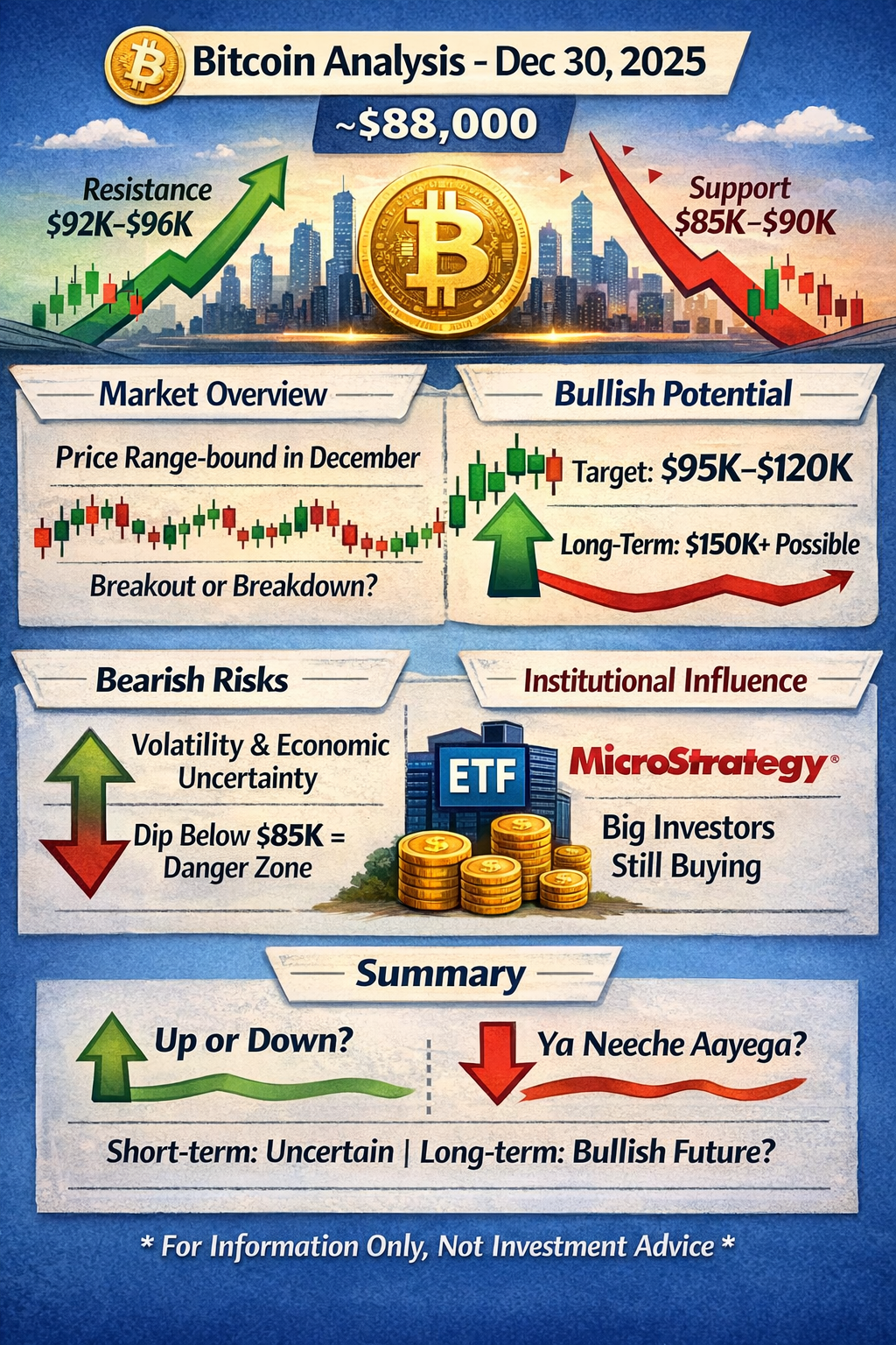 Aktualny $BTC Zrzut Ceny – Bitcoin handluje w okolicach ~$88K, pokazując umiarkowaną zmienność i stłumione przepływy na koniec roku na rynkach krypto.