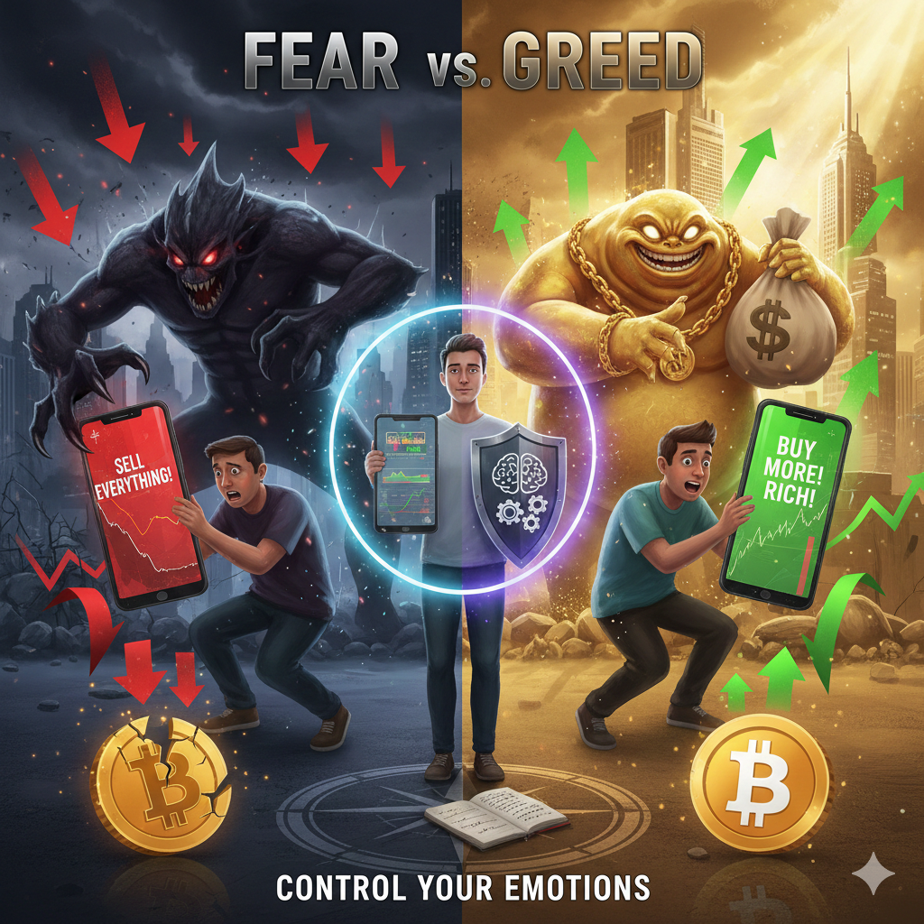 "Strach i chciwość to nie tylko emocje, to cisi zabójcy twoich zysków z kryptowalut. Naucz się nimi zarządzać, zanim one zaczną zarządzać tobą."