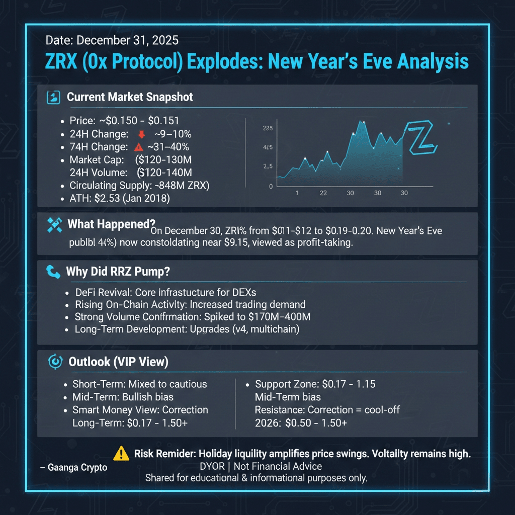 $ZRX (0x Protocol) niedawno przyciągnął silną uwagę na rynku kryptowalut po zrealizowaniu eksplozji, a następnie zdrowej korekty. Ta akcja cenowa umieściła ZRX wśród najbardziej omawianych tokenów infrastruktury DeFi wchodząc w nowy rok.