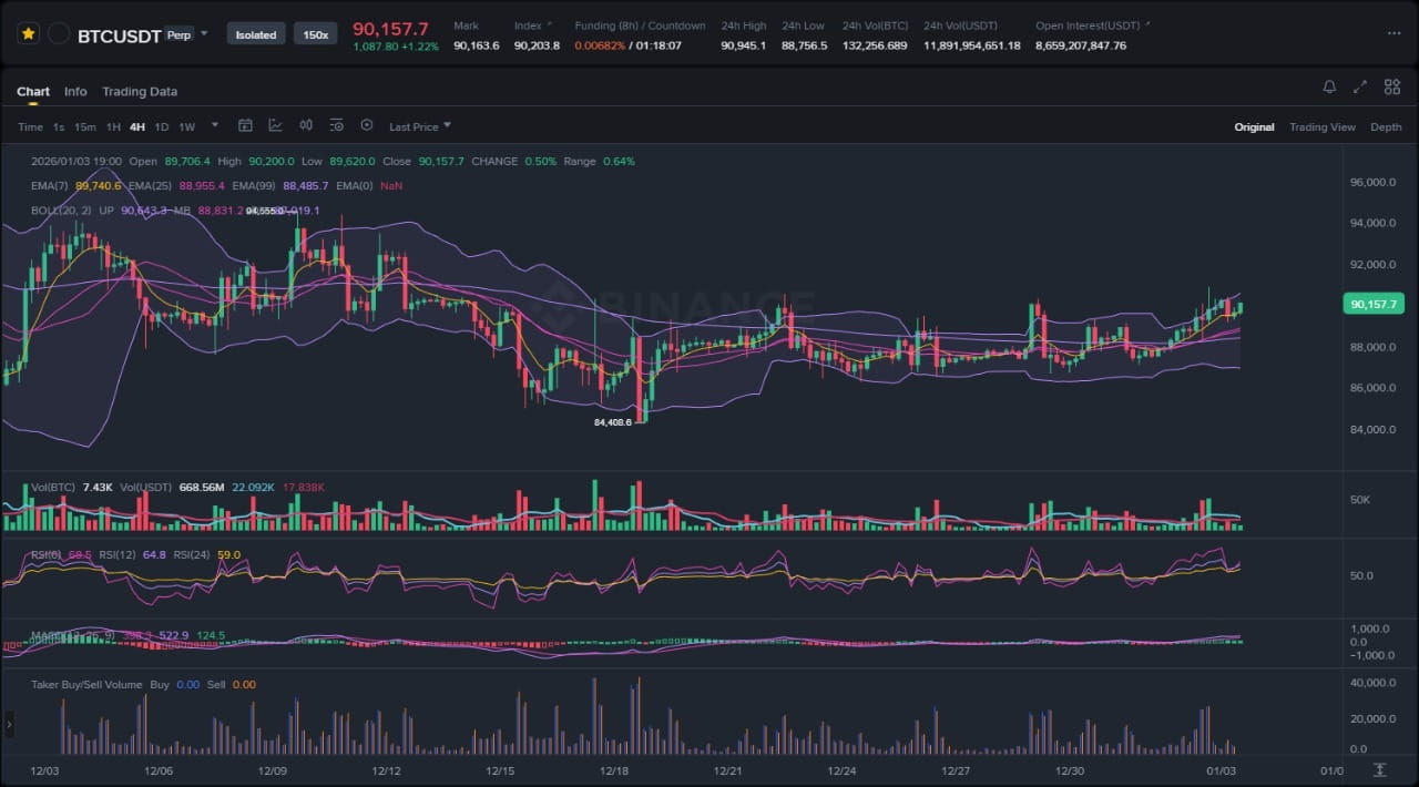 Bitcoin rozpoczyna 2026 rok w klasycznej walce, z działaniami cenowymi przytulającymi się do poziomu 89 900 USD przy kapitalizacji rynkowej wynoszącej 1,79 biliona USD i dziennym wolumenie na poziomie 45 miliardów USD, podczas gdy byki szukają przekonania do wzrostu, a niedźwiedzie obserwują potencjalną rewersję średniej z ostatnich szczytów. Ta sytuacja odzwierciedla odwieczną narrację kryptowalutową o dynamice versus ostrożności, gdzie struktura techniczna zderza się z sentymentem napędzanym nagłówkami, wymagając czujności od uczestników rynku śledzących dynamikę płynności i zmiany przepływu zamówień.