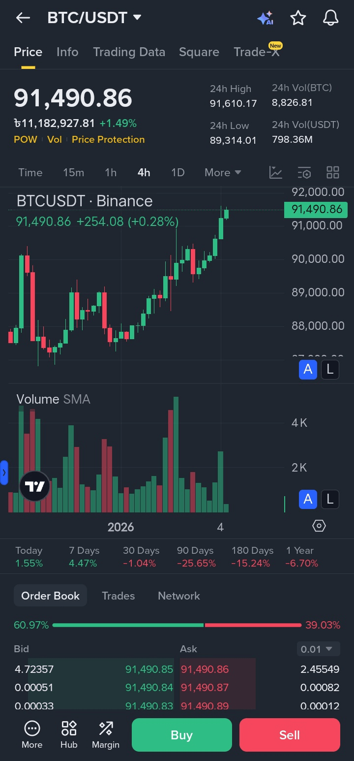 Jeśli zamkniemy świecę 4H powyżej $91.5K z wolumenem, następny przystanek to $92K+ ŁATWE.