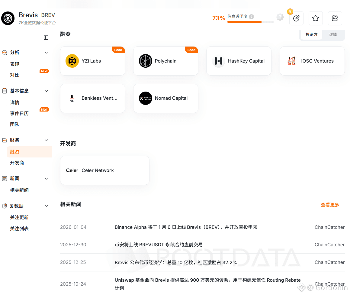 Brevis的融资进程堪称ZK赛道的焦点事件。2024年11月12日,项目正式宣布完成750万美元种子轮融资,由Polychain Capital与Binance Labs(搜索资料中部分标注为Yzi Labs,即原Binance Labs)联合领投,阵容豪华的跟投方包括IOSG Ventures、HashKey Global、Bankless VC、Nomad Capital等知名加密资本,本轮融资后项目估值已突破3亿美元。