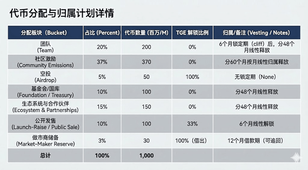 Projekt oparty jest na zasadzie Fair Launch, nie wprowadzając inwestycji w rundzie aniołów ani od inwestorów VC, lecz przeprowadzając dystrybucję przez publiczną rundę społecznościową o niskiej wycenie (10 milionów dolarów FDV), Space Race i airdropy, celowo rezerwując asymetryczną przestrzeń wzrostu dla społeczności, co sprawia, że struktura tokenów jest bardziej ukierunkowana na aktywnych użytkowników i długoterminowych uczestników; zachęty dla zespołu pochodzą głównie z długoterminowo zablokowanych udziałów tokenów.