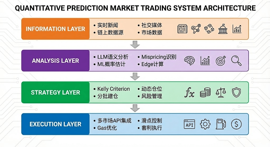 Wielosource'owe pozyskiwanie informacji Edge (Multi-source Edge Sourcing): integracja rzeczywistych kursów Polymarket, danych z sondaży, prywatnych i zewnętrznych strumieni informacji w celu przeprowadzania krzyżowej weryfikacji ukrytych prawdopodobieństw wydarzeń, systematyczne odkrywanie informacji, które nie zostały jeszcze odpowiednio wycenione.