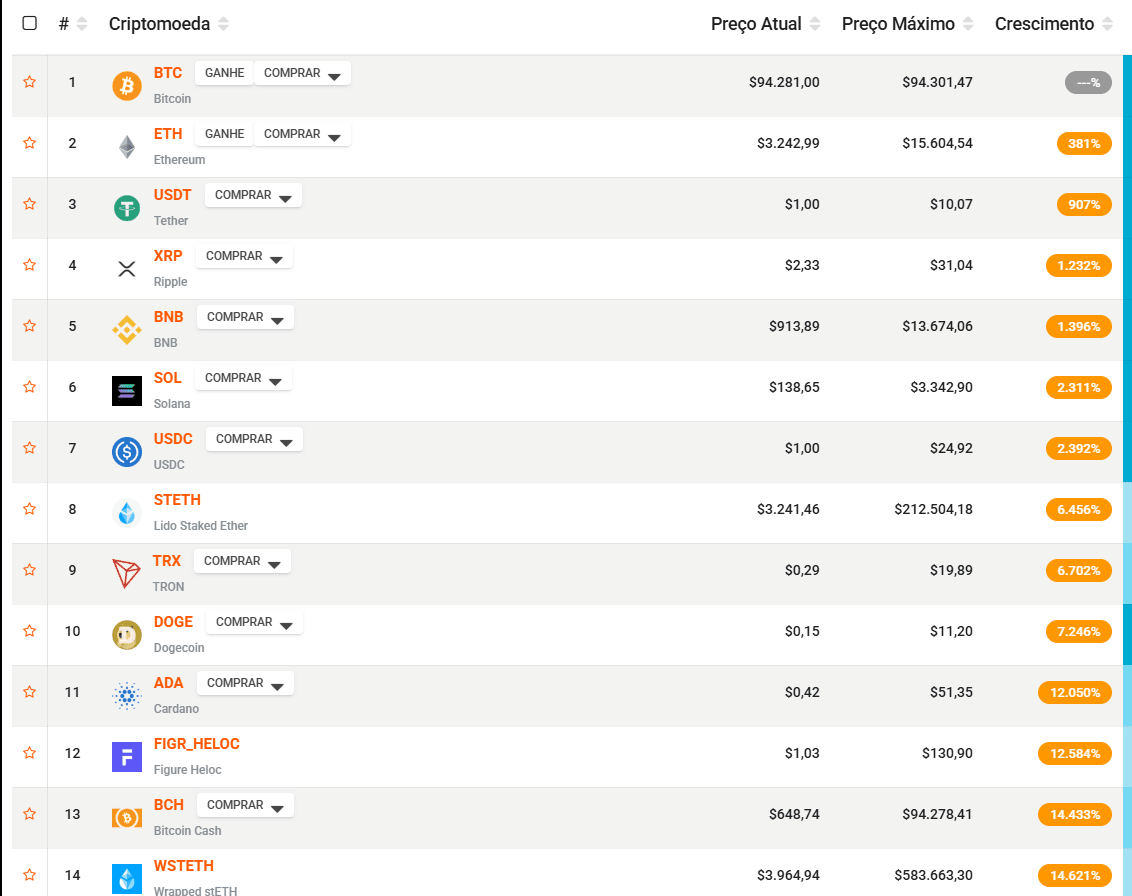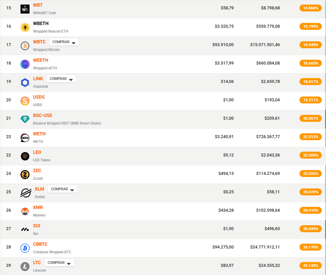 Zostawiam listę 29 głównych kryptowalut według kapitalizacji rynkowej i ile by wzrosła, gdyby miała tę samą kapitalizację jak $BTC 💥 $BNB $SOL