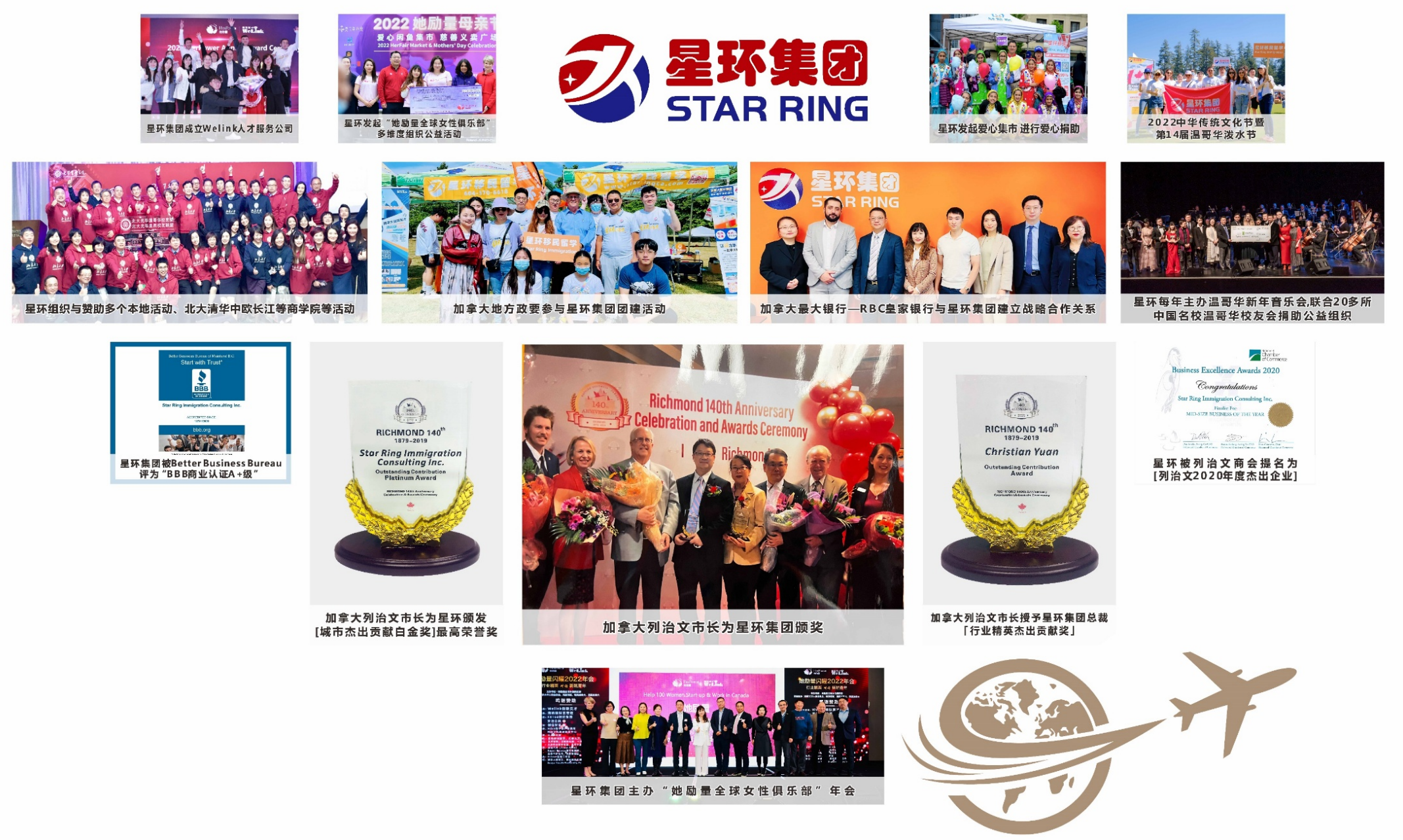 [Grupa Star Circle w Kanadzie] jest zarejestrowaną instytucją świadczącą kompleksowe usługi, koncentrującą się na imigracji, studiach, edukacji, turystyce oraz wsparciu w zakresie zakupu nieruchomości i przedsiębiorczości dla nowych imigrantów, między Kanadą a Chinami. Grupa obejmuje takie działy jak Star Circle Imigracja i Edukacja, Star Circle Crown Travel oraz Star Circle Aviation.