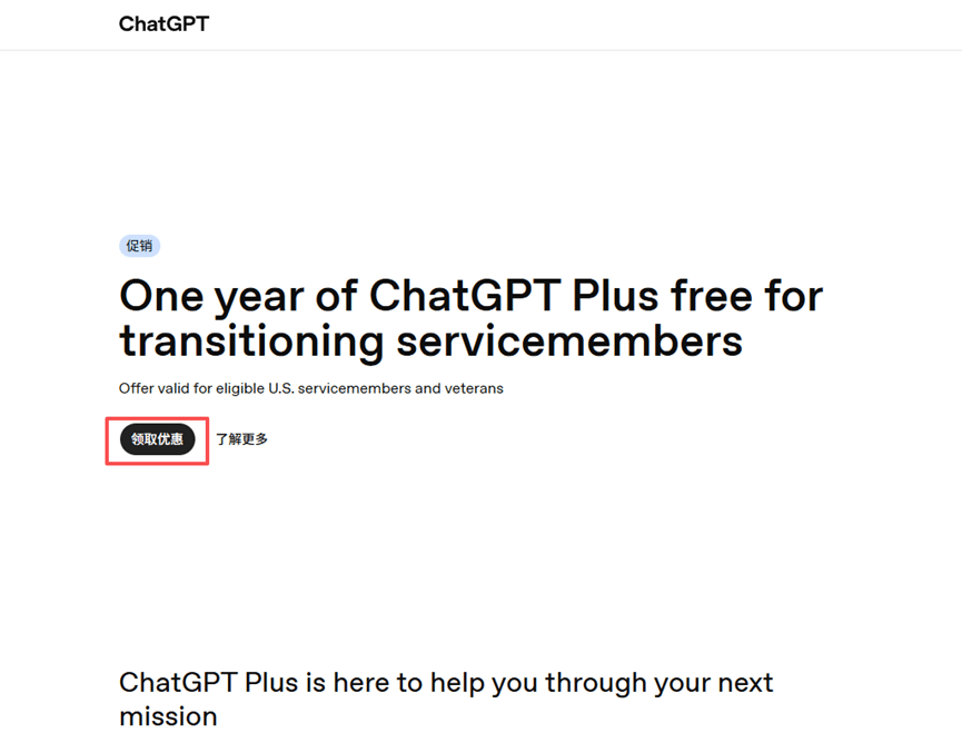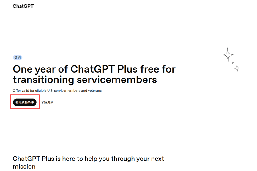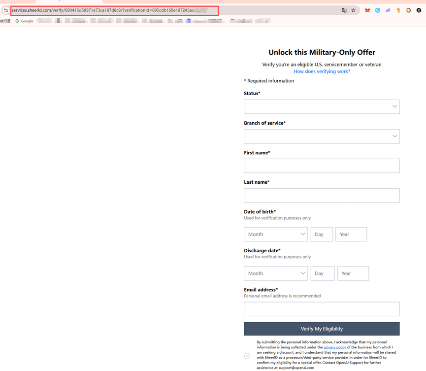Krok pierwszy: otwórz globalny proxy, zaloguj się na swoje konto ChatGPT, otwórz nową kartę i wpisz http://chatgpt.com/veterans-claim, aby otworzyć stronę weryfikacji kwalifikacji, a następnie pobierz zniżkę, jak pokazano na obrazku