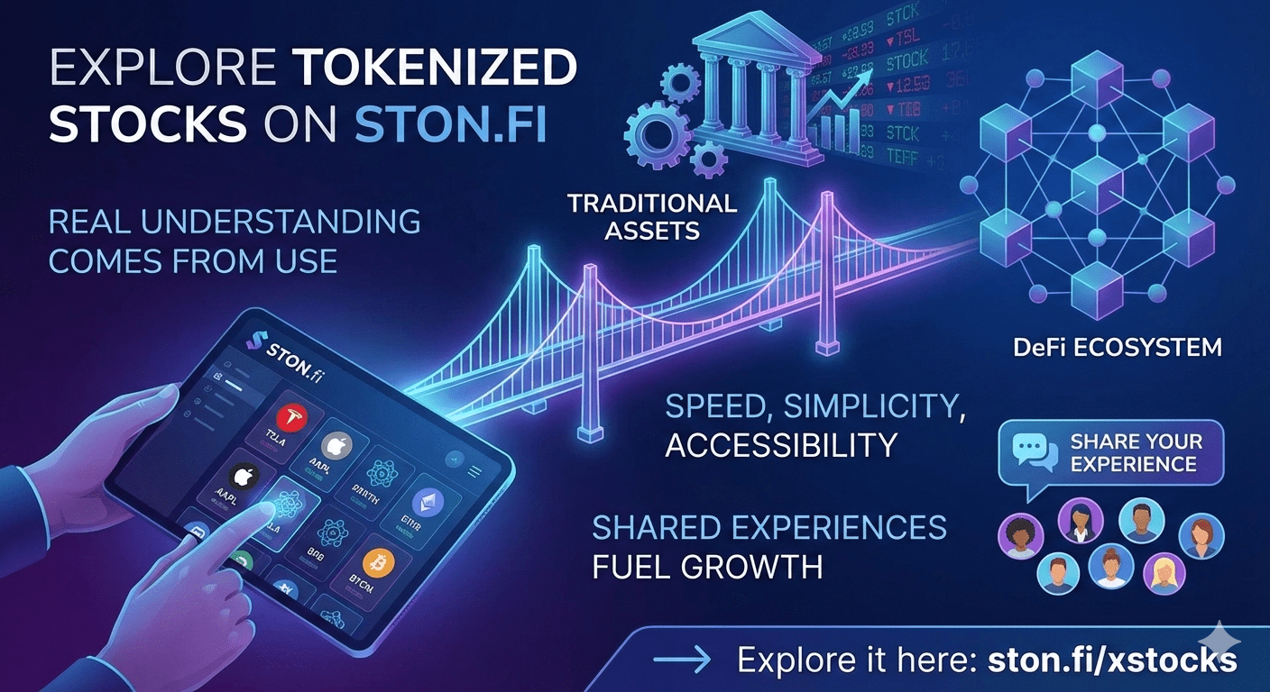DeFi rozwija się, gdy ludzie nie tylko obserwują z boku, ale biorą udział — rozważnie, odpowiedzialnie i z ciekawością. Próbowanie tokenizowanych akcji na platformach takich jak STON.fi (ston.fi/xstocks) i dzielenie się jasnymi, wykonalnymi opiniami przyspiesza postęp. Twoje bezpośrednie raporty pomagają programistom rozwiązywać prawdziwe problemy, pomagają nowicjuszom działać pewnie i pomagają całej przestrzeni przejść z teoretycznej obietnicy do praktycznej użyteczności.