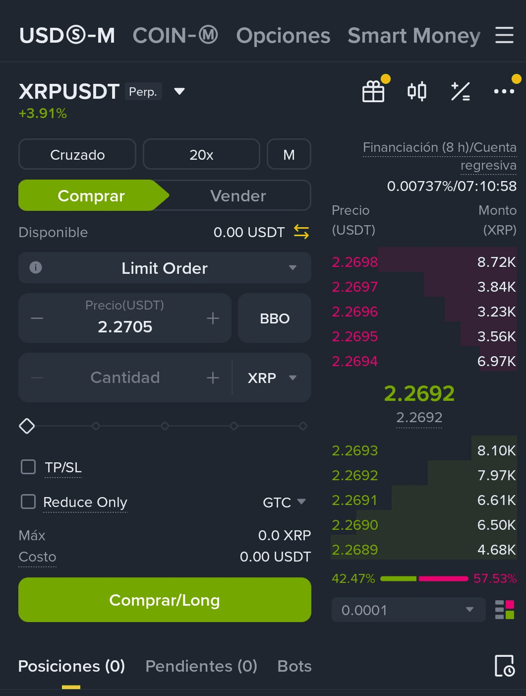 W tym przypadku nie kupujemy waluty za nasze dolary (USDT), aby przekształcić ją w inną walutę, taką jak SOL czy LINK. Po prostu podpisujemy kontrakt, w którym zakładasz, czy cena wzrośnie (Long) czy spadnie (Short).