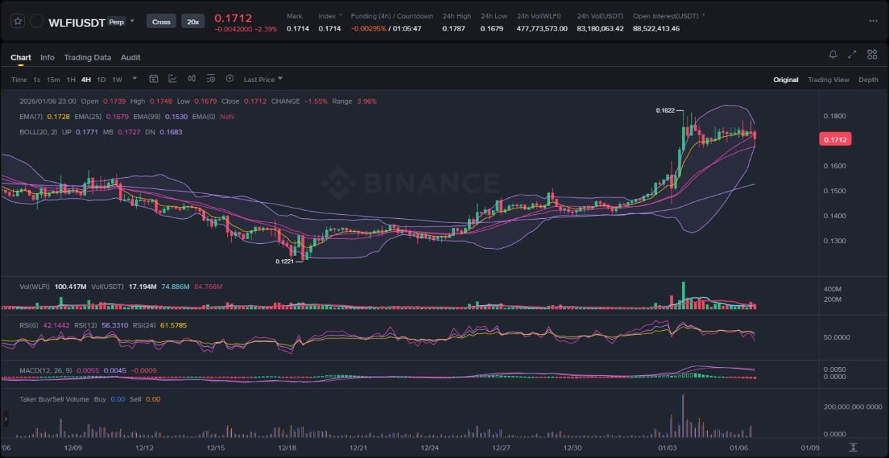 W niestabilnym świecie kryptowalut World Liberty Financial (WLFI) zwrócił uwagę dzięki dramatycznemu wzrostowi o 23%, związany z wydarzeniami geopolitycznymi, jednakże istniejące kontrowersje mogą osłabić entuzjazm. Jako starszy analityk rynku kryptowalut na Binance Square, ten analiza analizuje najnowsze ruchy cenowe na podstawie załączonego wykresu, integruje trzy najnowsze nagłówki wiadomości i przedstawia prawdopodobne scenariusze dla inwestorów poruszających się w tym wysokoriskowym środowisku. Z uwagi na to, że WLFI notuje się na poziomie 0,2029, wzajemne oddziaływanie silnych impulsów wzrostowych i narastających ryzyk tworzy obraz możliwości poprzedzonych ostrożnością, gdzie wskaźniki techniczne są zgodne z pozytywnymi sygnałami, ale rozbieżności w nastrojach mogą wskazywać na fazy dystrybucji w przyszłości.