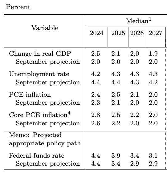 Prognozy FED na następne 2 lata (bezrobocie, wzrost, inflacja):