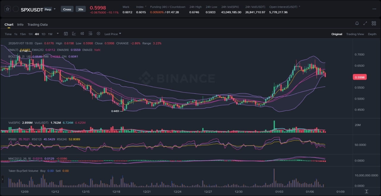 Token SPX, często stylizowany jako SPX6900 w dyskusjach rynkowych, działa w ekosystemie memecoinów, rysując paralele z aktywami o wysokiej zmienności, takimi jak Dogecoin czy Shiba Inu, ale z unikalnymi związkiem z narracjami inspirowanymi indeksami giełdowymi. W ciągu ostatnich kilku tygodni SPX wykazał wyraźny trend wzrostowy, przechodząc z fazy konsolidacji w impulsowy wybicie. Wolumen handlu wzrósł w związku z tym ruchem, wskazując na rzeczywiste zainteresowanie, a nie tylko spekulacyjną szum. W obecnej cenie 0.2029, token znajduje się na kluczowym skrzyżowaniu, gdzie zbieżność wskaźników technicznych i ostatnich katalizatorów wiadomości może określić, czy ta hossa się utrzyma, czy napotka powrót średniej. Szerszy nastrój rynku w kryptowalutach pozostaje ostrożnie optymistyczny, a stabilność Bitcoina stanowi wsparcie, chociaż rotacje memecoinów mogą zwiększać ryzyko ze względu na ich wrażliwość na przepływy detaliczne i hype w mediach społecznościowych.