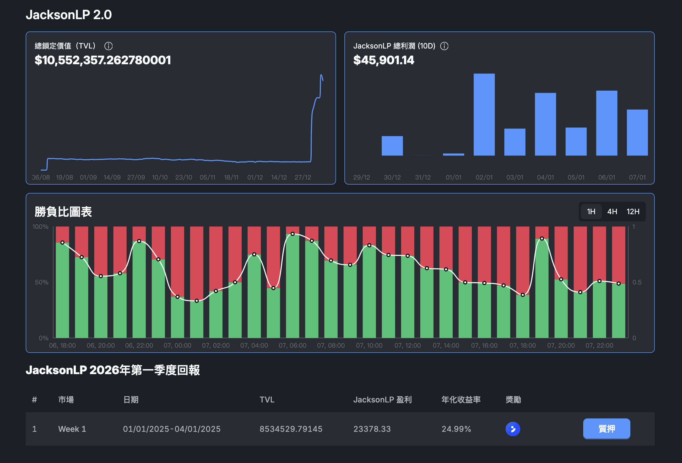 Główną zaletą Jackson LP jest zdeponowanie $JACKSON, aby stać się "gospodarzem platformy" i czerpać zyski oraz dywidendy z platformy. Obecnie APY wynosi 50%-100%+, a całość przychodów platformy (transakcje, NFT itp.) jest wykorzystywana do回购 $JACKSON na rynku, a następnie dystrybuowana wśród LP. W bull market TVL gwałtownie rośnie, tworząc zrównoważony cykl zysków, który ma większą wartość długoterminową niż popularne memecoins. (Nowa edycja LP w 2026 roku przyniosła niesamowite zyski – w ciągu 10 dni zarobiono 45 tys. USD!)