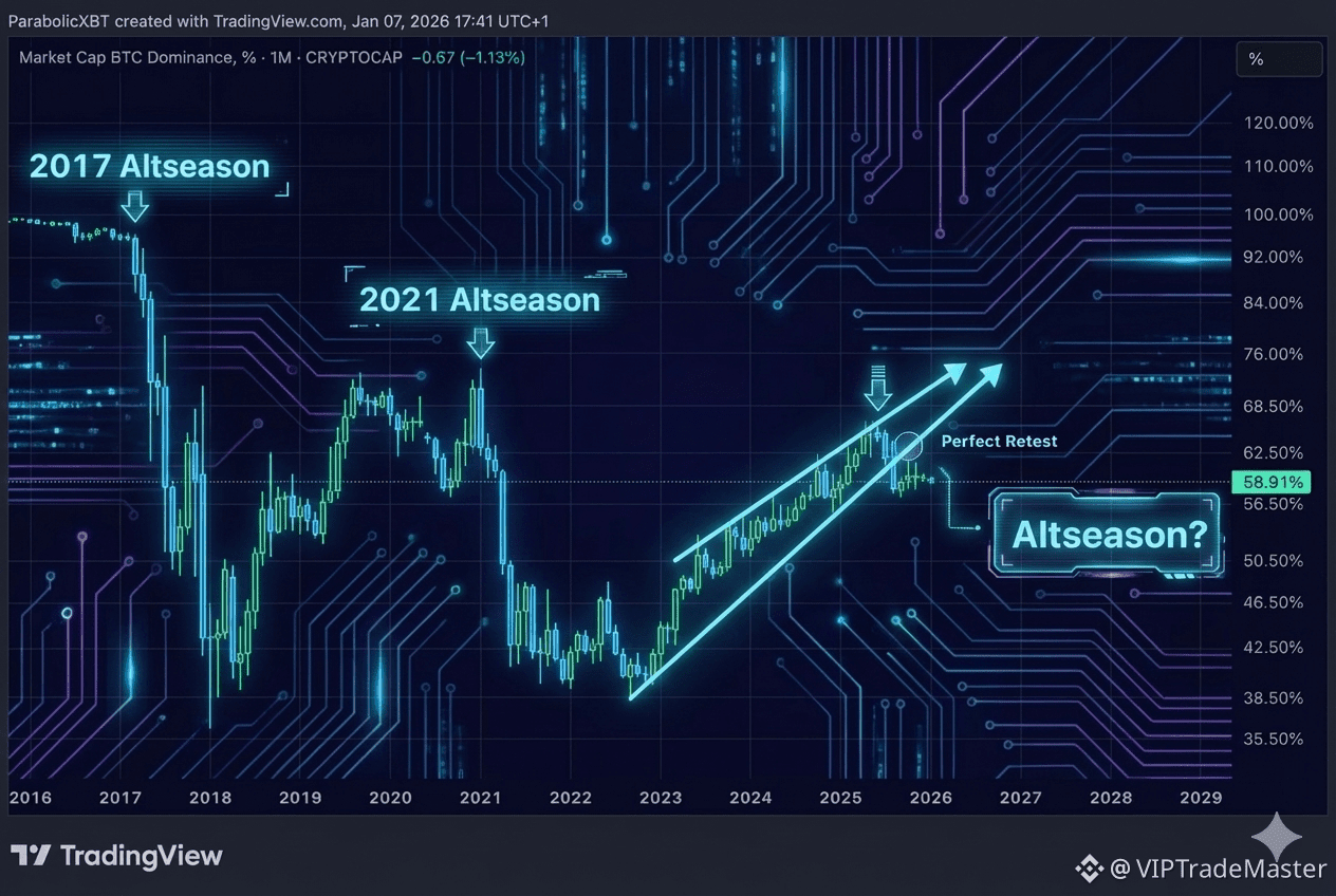 While the crowd is busy mourning the lack of a bull run, the charts are screaming a different story. The most important metric for altcoin explosions—Bitcoin Dominance (BTC.D)—has just printed a textbook reversal signal.