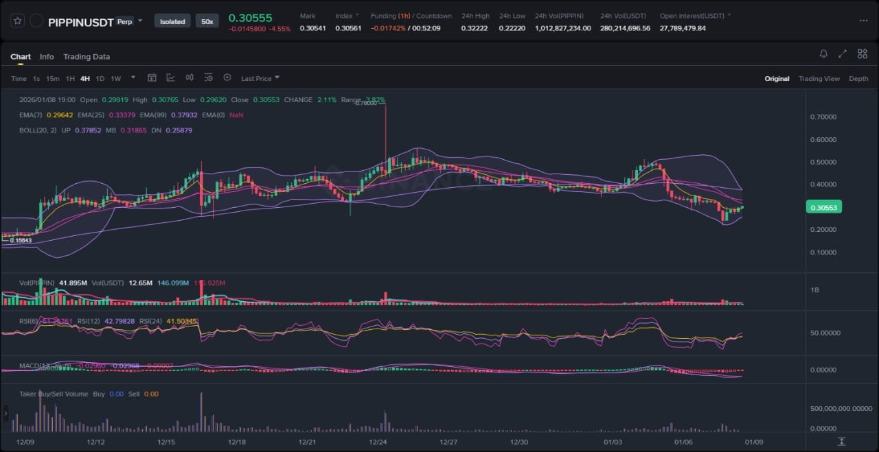 Szerszy rynek kryptowalut wykazał oznaki odporności na początku stycznia 2026 roku, przy czym memecoiny prowadzą niepewną odbudowę po okresie stagnacji w sezonie świątecznym. Stabilizacja Bitcoina powyżej kluczowych poziomów wsparcia przelała się na altcoiny, sprzyjając płynności w spekulacyjnych aktywach, takich jak PIPPIN. Wolumen handlu na giełdach wzrósł nieznacznie, ale nic nie krzyczy jeszcze euforią—bardziej przypomina ostrożny powrót po grudniowym chopie. Sam PIPPIN handluje na poziomie 0.2029, wyraźnie wzrastając z niedawnych minimów w okolicy 0.155, co odzwierciedla klasyczny odbicie w w przeciętnie niedźwiedzim otoczeniu makro zdominowanym przez regulacyjne szumy i makroekonomiczne wiatry czołowe. Ten obraz podkreśla wrażliwość sektora memecoinów na zmiany sentymentu, gdzie hype może napędzać impulsywne ruchy, ale fundamenty często pozostają w tyle.