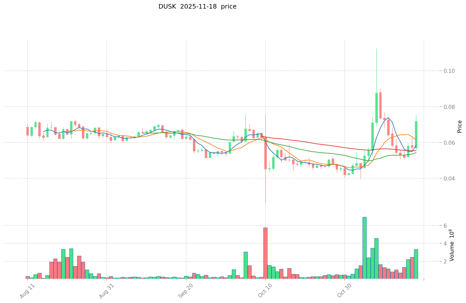 Na dzień 18 listopada 2025 roku, cyrkulująca podaż DUSK wynosi 500,000,000 tokenów, przy całkowitej podaży 500,000,000. Maksymalna podaż ustalona na 1,000,000,000 tokenów.