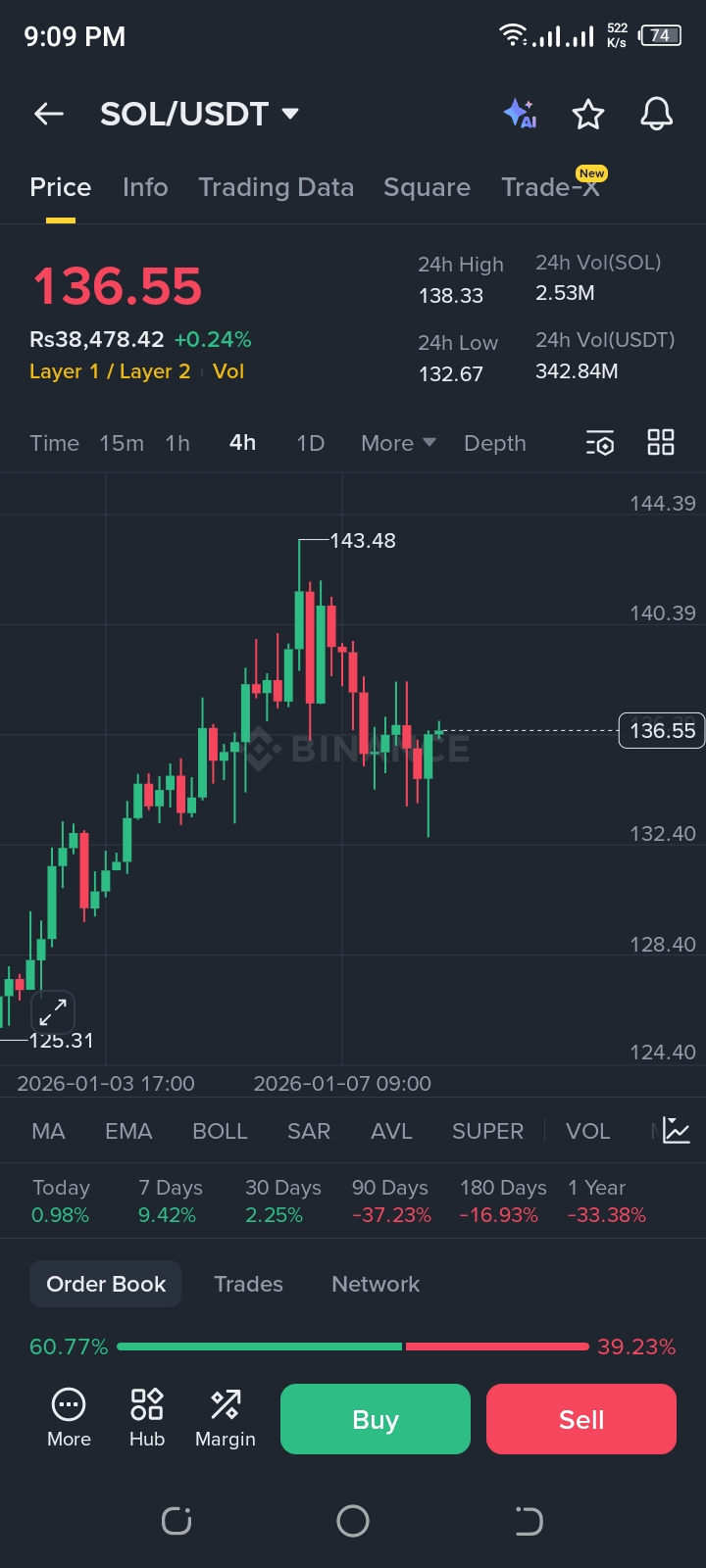 $SOL miał silny wzrost z poziomów niższych i niedawno doświadczył zdrowego korekty po odrzuceniu w okolicach 143. Teraz cena powraca do kluczowej strefy popytu wokół 132–135, która wcześniej działała jako silna wsparcie podczas trendu wzrostowego.