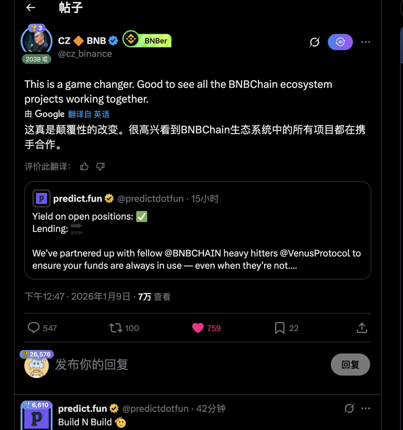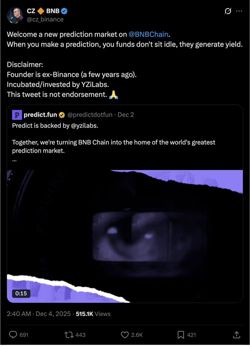Właśnie w momencie pisanie tego artykułu zobaczyłem, że CZ wspomniał o Predict.fun