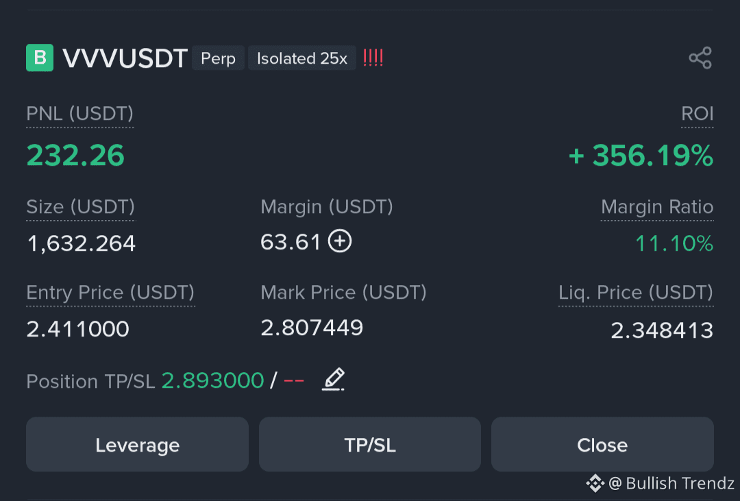 Position Update: +356.19% ROI on $VVV / USDT Perpetual.