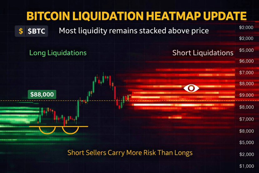 Obecny $BTC heatmap likwidacji wykazuje wyraźny dysbalans.