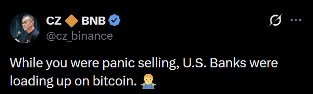 „Podczas gdy panicznie sprzedawałeś, amerykańskie banki nabijały się Bitcoinem. 🤷♂️”