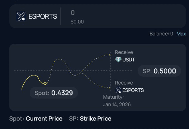 Na platformie dostępny jest produkt ESPORTS/USDT@14JAN2026-0.5C