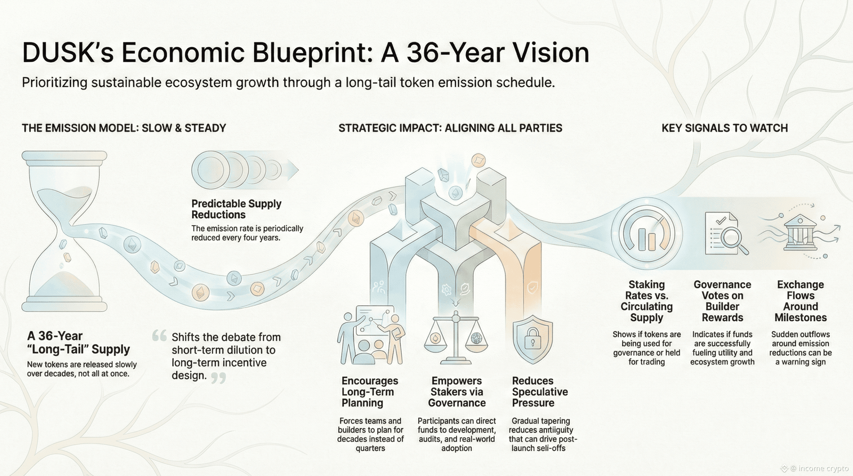 After parsing the 36-year tail and the four-year reduction cadence closely, one thing was obvious - DUSK’s supply plan is trying to trade short-term headline velocity for multi-decade incentive plumbing.