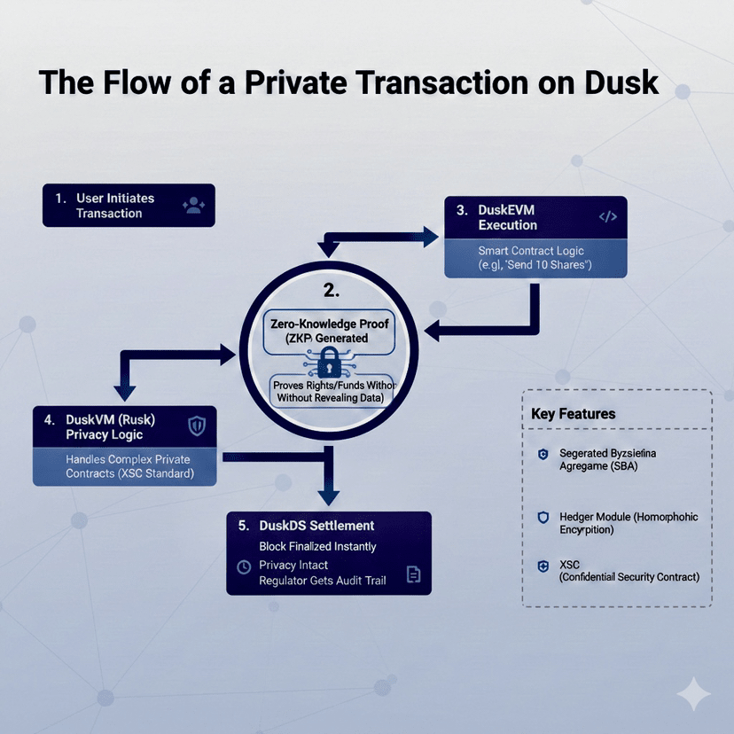 Dusk rozwiązuje to, budując modułowy stos "Zgodności z Prywatnością". Rozłożymy to na czynniki pierwsze, aby zrozumieć, jak ten silnik działa w sposób, który ma sens.