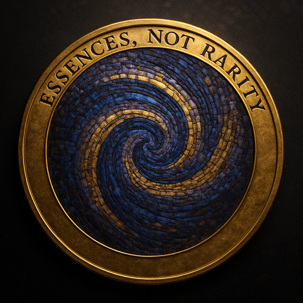 Te Esencje nie są wyjaśniane na łańcuchu. Ich znaczenie pozostaje otwarte na obserwację i porównanie. Przyszłe systemy, w tym generacja oparta na AI, mogą odczytywać te parametry, aby tworzyć nowe wizualne interpretacje pochodzące z istniejących zapisów — bez zmiany oryginałów.