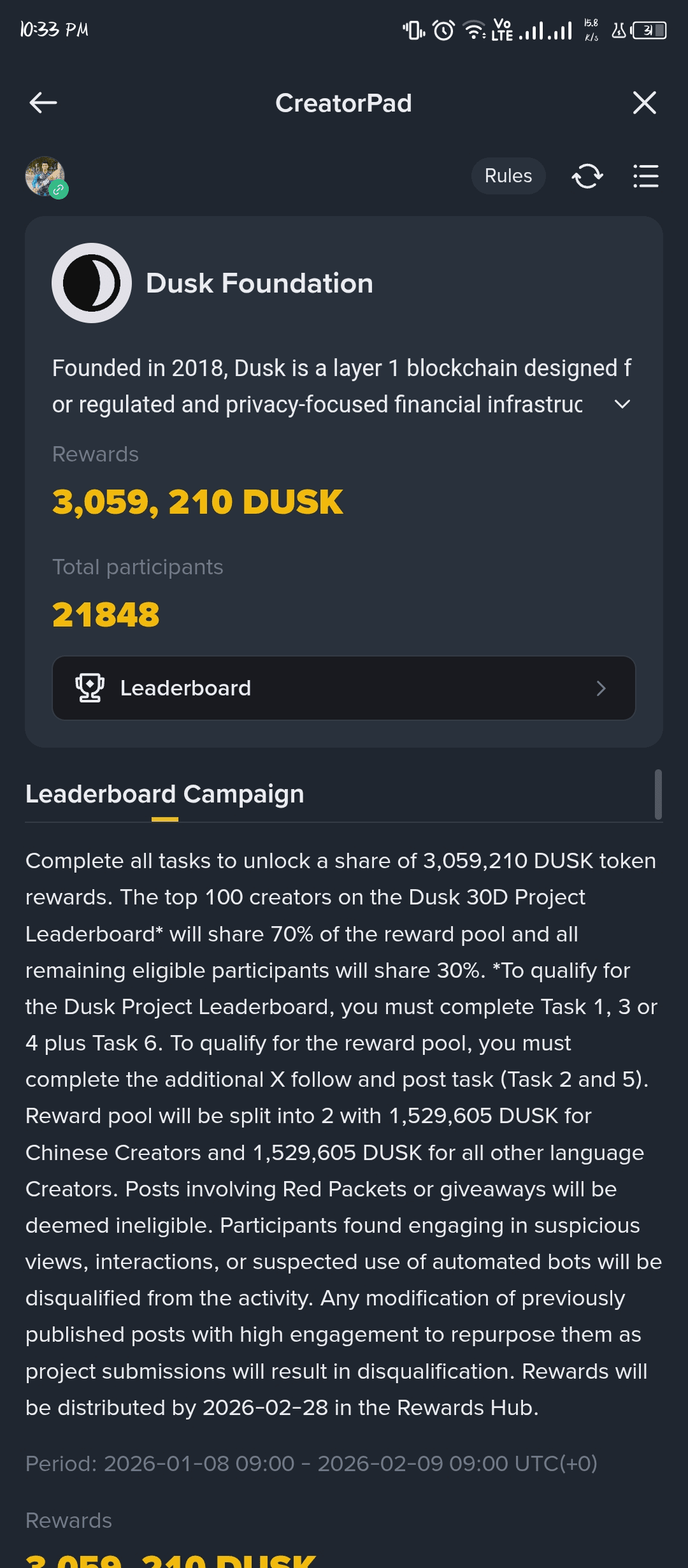 Tworzenie & Zarabianie na Binance Square z $DUSK