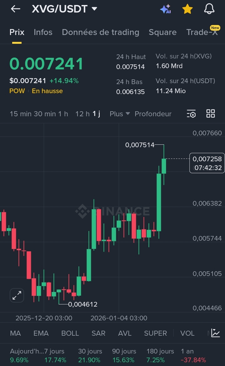 * Zwiększona płynność: Dodanie nowych par handlowych, takich jak XVG/USDC na Binance i innych głównych platformach, nadal stabilizuje płynność tokena.